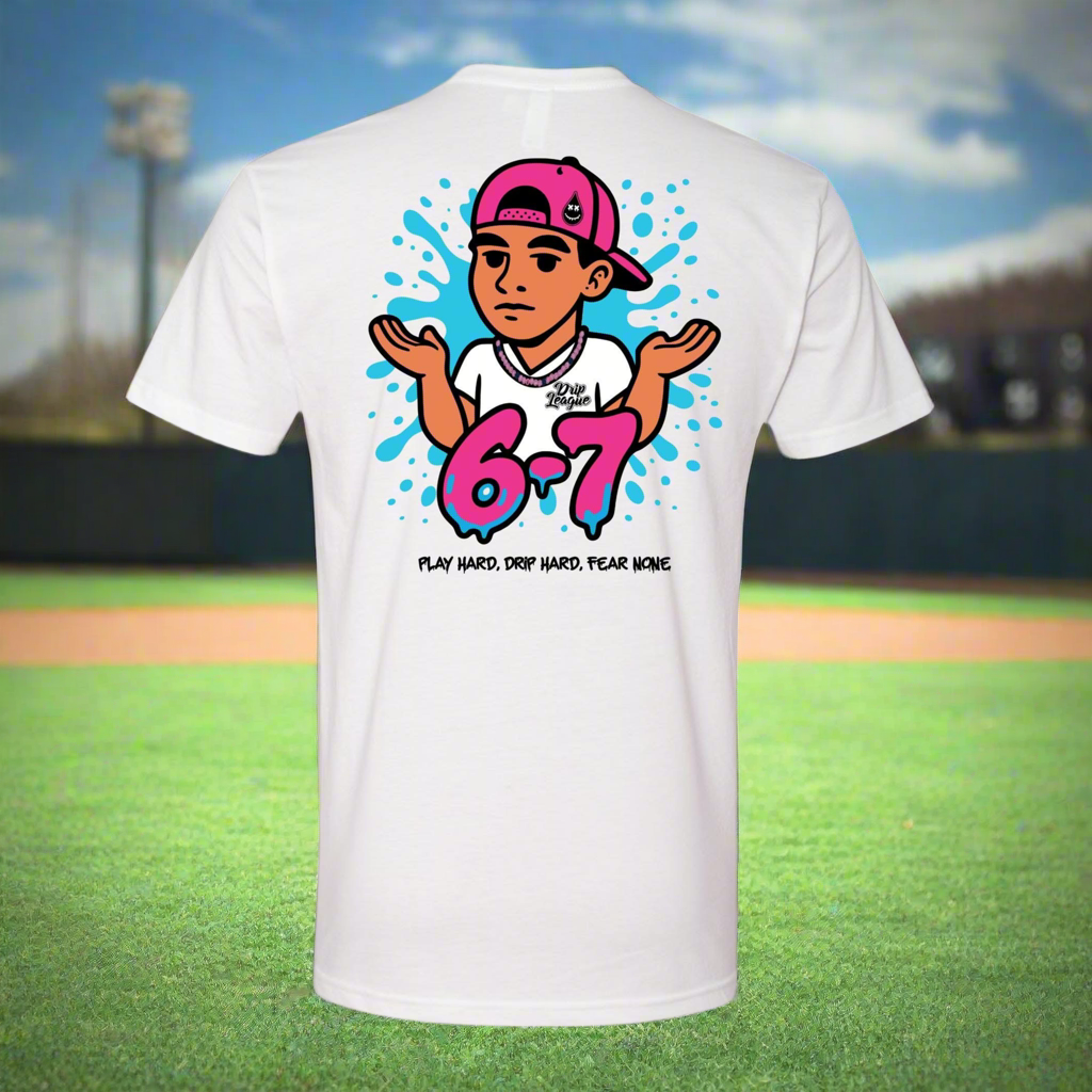 This tee isn’t just a shirt. It’s a statement. Inspired by the viral 6-7 meme, it’s built for players and fans who know what it means to stand tall under pressure. Clean, bold, and drippy—perfect for the field or in the wild.